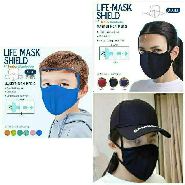 MASKER SHIELD DEWASA dan anak merk JW SUDAH READY YA harga per pcsMasker merk cuddleme isi 3pcs ready juga harga 25rb isi 3 untuk cuddlemeMasker sekaligus pelindung mata dari mika kokoh dan lentur dan masker dengan bahan kain yg lembut lapisan tengah menggunakan spunbond anti air,,dan lapisan luar dan dalam kain lembut ya warna boleh pilih silakan checkout dan pilih warna variasinya ya barang asli produk junior wardrobe bukan kw ya... Untuk yg waterproof bukan merk jw ya masker 2lapis waterproof buatan Indonesia tp bahan bagus gak ada shieldnya (pelindung mata) hanya masker sajaSize anak dan size de