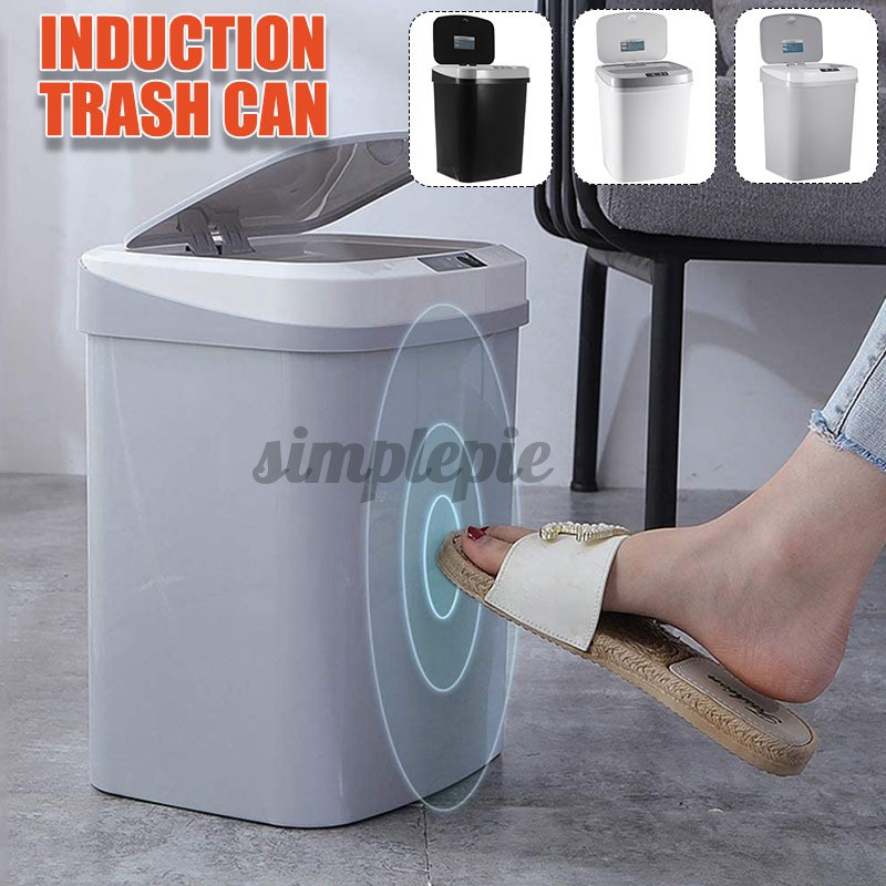 15L 4-Gallon Touch-Free Sensor Automatic Stainless-Steel Trash Can KitchenLarge Capacity -- Our smart sensor trash can has a capacity of 4 gallons / 15 liters, which can effectively isolate various odors and create a fresh and clean home environment!Motion Sensor -- The Smart Trash Can features hands-free motion sensor lid which automatically opens when it detects people who get near the lid or knock the bin.3 Smart Open Modes -- Induction / Vibration / Switch Button, using the lastest sensor, can be sensed within 30cm, the lid will automatically close when hands or objects leave for 4 seconds.USB Charging & Long Standby -- Our smart trash can built-in lithium battery with USB-DC interface, ultra-low energy consumption, can be used for 2-4 months on a single charge!Smart Living Essentials -- Make your life easier. This trash can is both beautiful and practical which is suitable for office, kitchen, bedroom and bathroom. Specifications:Size:As picture showWeight: 1.4kg/3lbCapacity: 15l/4galMaterial: ABS PPColor: White, Khaki, Grey, BlackPower: Rechargeable Lithium BatteryInput: Rechargeable Type - USB-DC 5V Battery Type - 1*AA Battery(Battery is not Included) Package Includes:1 x Smart Trash Can (Rechargeable Type / Battery Type)1 x User M