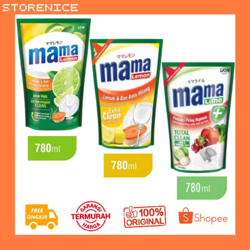 Mama Lemon Cairan Pencuci Piring 780 mlMama lemon dengan formula extra power clean baru, mengandung mineral anti lemak dan ekstrak jeruk nipis/lemon, terbukti hilangkan 100 macam lemak dan bau makanan (seperti rendang, gulai, opor, bumbu kacang) dan hilangkan bau amis (seperti ikan, telur, bawang) pada peralatan makan dan masak anda serta wadah plastik.✔ Bau Amis Hilang✔ Halal✔ Lemak Hilang✔ Lembut Di TanganMOHON DIBACA :Untuk varian tidak dapat memilih dan akan dikirim secara random sesuai stok yg ada di tokoVarian ada Jeruk Nipis dan Lemon (Random) Terimaka