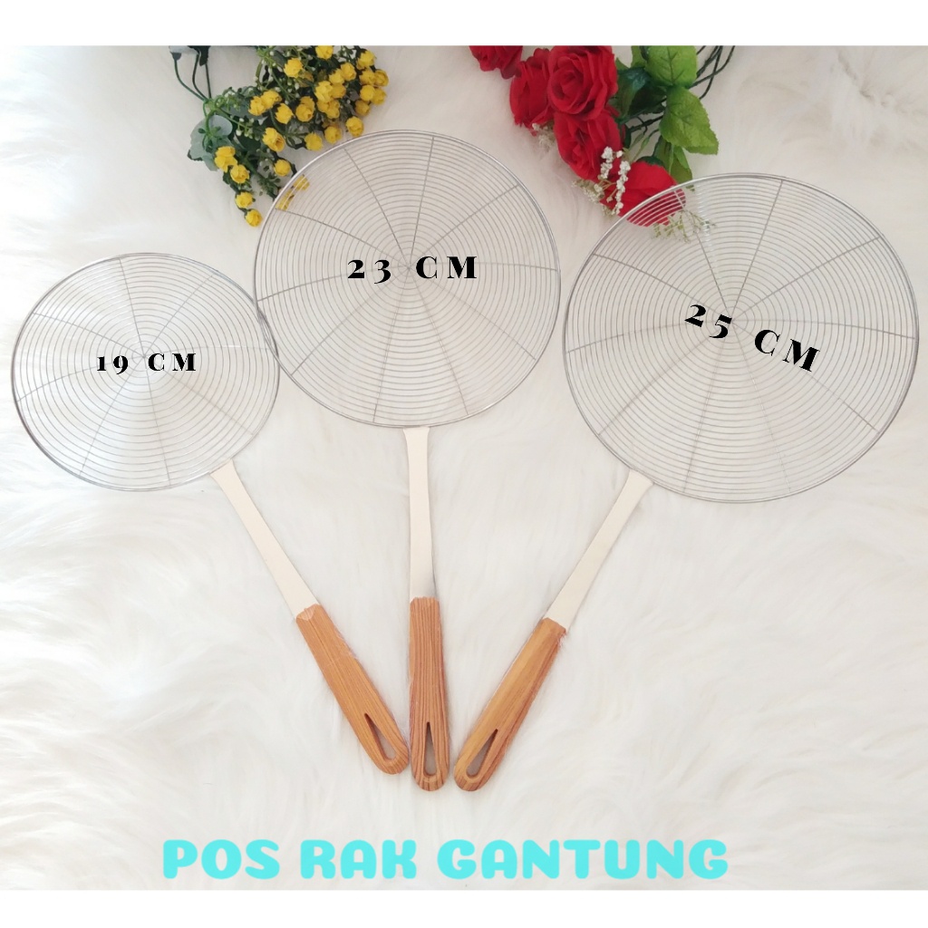 serok laba gagang kayubahan yang di gunakan kayu dan kawat kegunaan :salasatu nya untuk penyaring gorengan dan juga bisa di gunakan untuk yang lain nya .UKURAN:- Besar 25cm- Sedang 23cm- Kecil