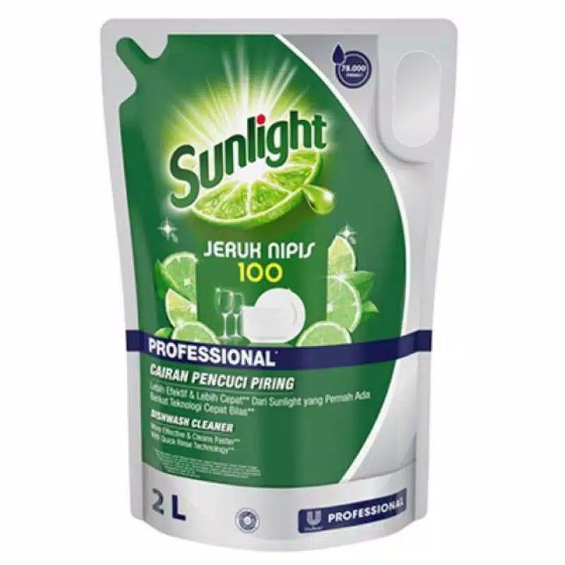 Sunlight Jeruk Nipis 100 kemasan 2 liter. Cairannya kental, cocok untuk usaha Catering, Cafe, dan Restoran.Setiap tetes Sunlight Jeruk Nipis 100 mengandung ekstrak jeruk nipis murni yang ampuh untuk membantu menghancurkan sisa lemak dan minyak dengan lebih cepat dan lebih mudah. Kini, dilengkapi dengan teknologi baru Cepat Bilas, Sunlight Jeruk Nipis lebih efektif dan 10x lebih cepat bersihkan lemak. Mampu membersihkan wadah plastik sekalipun. Dapat digunakan untuk mencuci buah dan sayur.#sun