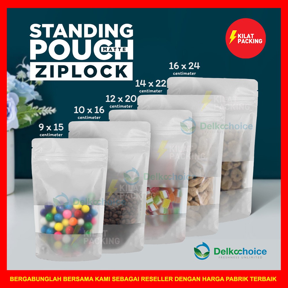 Pusat Grosir Perlengkapan di Kabupaten Tulungagung Standing Pouch Matte Window White / Plastik Klip Kemasan Snack Dan Makanan Premium Murah Satuan dari Kilatpacking Kota Jakarta Utara