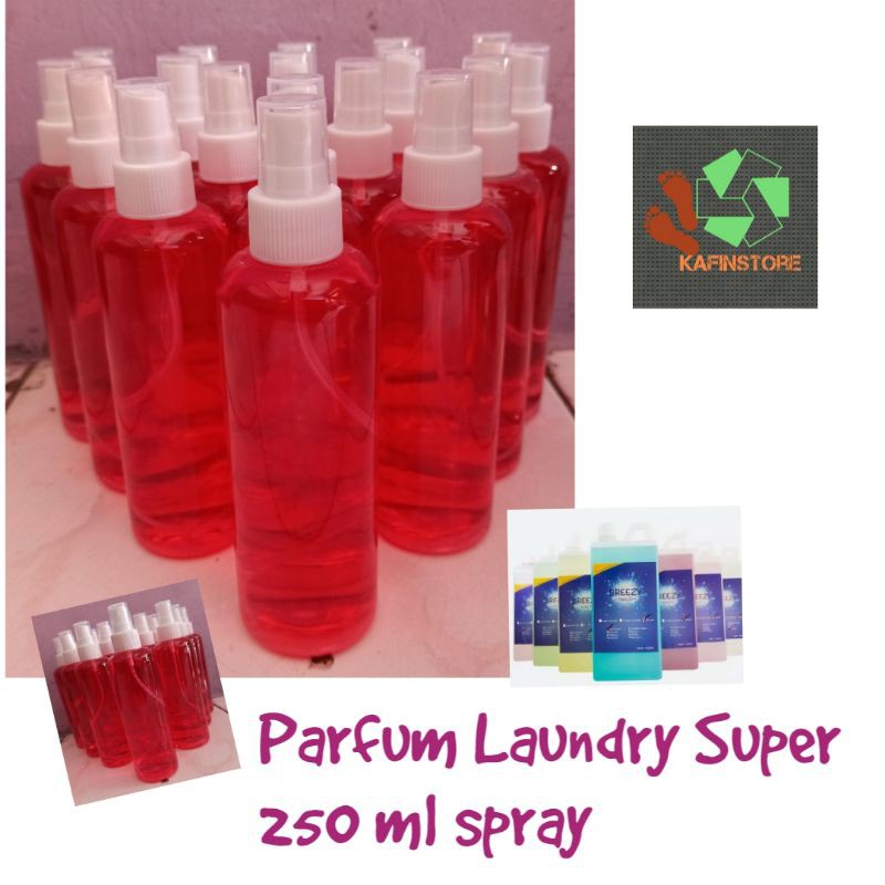 Breezy Parfum laundry super , dengan bibit parfum lebih banyak 30% dari yang biasa, sehingga akan lebih awet daripada parfum yang biasa. kini dalam kemasan 250 ml dengan botol spray. Wangi : MauraOpen reselle