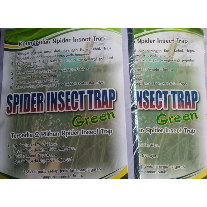 perangkap serangga warna hijau untuk kaper dan ngengat. mohon untuk konfirmasi warna apa saja yang di pesan. terimakasihKEUNGGULAN1. SEBAGAI PERISAI DARI SERANGGA2. TERBUKTI MAMPU MENGURANGI POPULASI KUTU KEBUL,TRIPS3. TAHAN AIR HUJAN DAN PANAS4. TAHAN LAMA DAYA REKATNYA5. MENGANDUNG BAHAN YANG DI SUKAI KUTU KEBUL#spiderinsectrap #perangkapkutupertanian #perangkapserangga #trapserangga #traphama #perangkaphamaserangga #spider