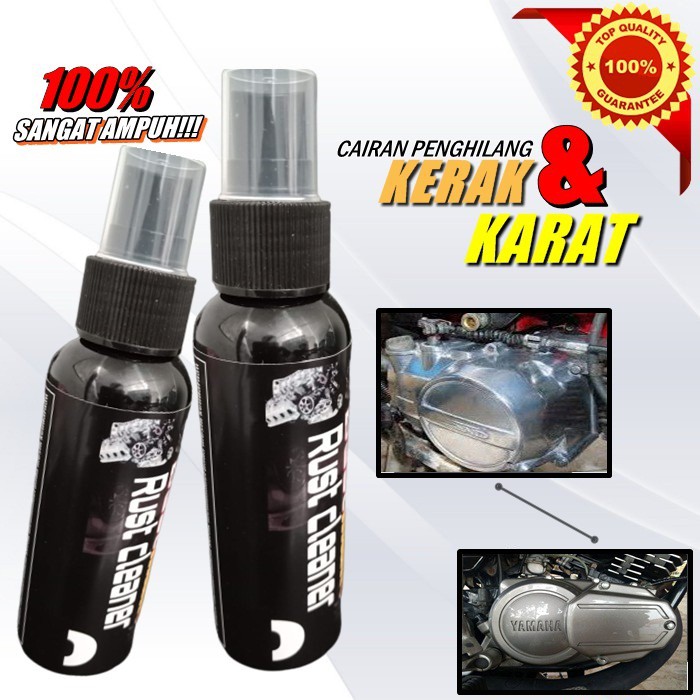 Pembersih Karat Mesin Motor Bestmaint Rust cleanerGARANSI 100%WARNINGnb: untuk pengiriman ke luar pulau Jawa di mohon pake kurir JNE.J&T tidak bisa untuk pengiriman luar pulau Jawa#KEGUNAAN-Bestmaint Rust cleaner Dapat membersihkan karat pada besi,crome,alumunium-Bestmaint Rust cleaner Dapat memebersihkan kerak membandel pada mesin kendaraan-Bestmaint Rust cleaner membersihkan sisa sisa oli membandel pada motor/mobilWARNINGJANGAN SAMPAI KENA BAHAN PLASTIK/ CAT MOTOR/MOBIL#CARA PAKAI Bestmaint Rust cleaner-Semprotkan cairan pada mesin yang berkerak-Gunakan kuas,sikat,atau yang lain untuk meratakan cairan ke mesin.Tunggu 5/10 menit biar cairan bereaksi,lalu bilas bersih dengan air-Untuk karat gunakan sikat alumunium atau sikat kawat yang halus aga cairan lebih reaktif-Gunakan dalam kondisi mesiin dingin ( tidak panas)-Hindari pengunaan di bawah terik matahari-Jika terkena kulit atau bagian tubuh yang lain segera cuci dengan sabun dan air yang bersihBestmaint Rust cleaner solusi buat kerak karat membandel dalam satu paketISI 100 mlberat:100 grSelamat berbelanja terimakasi