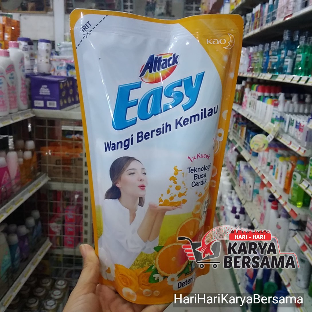 ATTACK EASY LIVELY ENERGETIC DETERJEN CAIR POUCH 750MLLively Energetic adalah Deterjen Easy dengan keunggulan Wangi Bersih Kemilau.Teknologi Busa Cerdik dan Wangi Penuh Pesona membersihkan noda membandel hanyadengan 1xKucek 1x Bilas, membuat pakaian wangi sehingga keluarga Andabersemangat dan siap beraktivitas. Angkat noda membandel dengan efektif hanyadengan 1xKucek. Saat membilas, busa dan noda hilang dengan cepat hanya dengan1xBilas. Mencuci jadi hemat air dan pakaian bersih kemilau. Rasakan sensasiLemon Ozone yang segar, menciptakan pesona wangi yang melekat dan lebih tahanlama di setiap pakaian Anda. Membuat keluarga Anda nyaman dan bahagia.Fitur Produk * Lembut di tangan * Cepat larut dan bersih sampai ke dalam serat kain * Dapat dioleskan langsung ke noda membandel * Tidak meninggalkan sisa deterjen di pakaian dan mesin cuci * Rasakan sensasi lemon Ozone yang